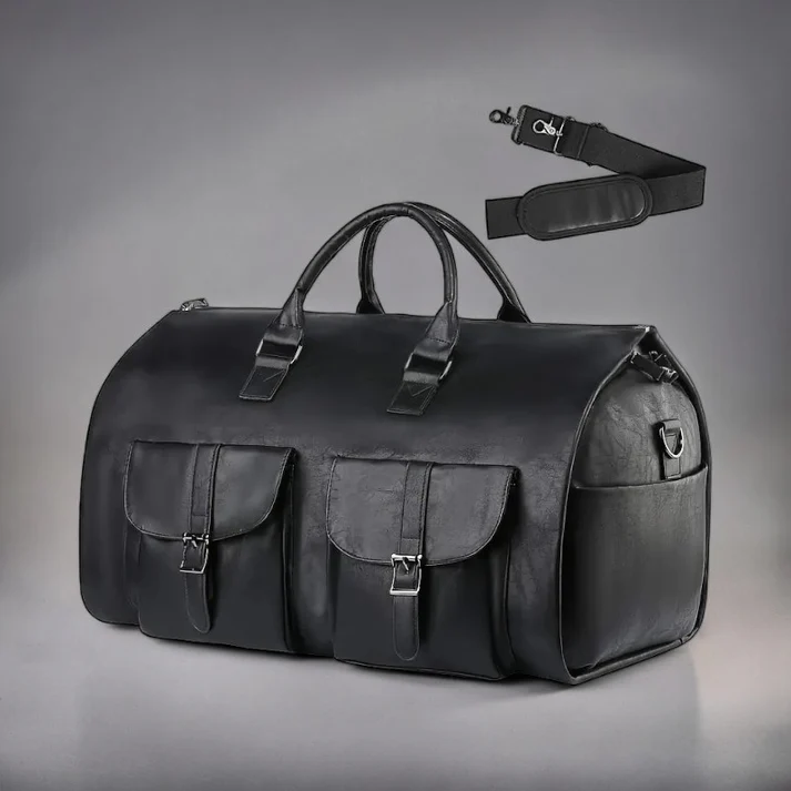 Men's Leather Travel Bag - Luhxe| Foldable| Carry-On Approved | Shoes Pocket Travel Bag