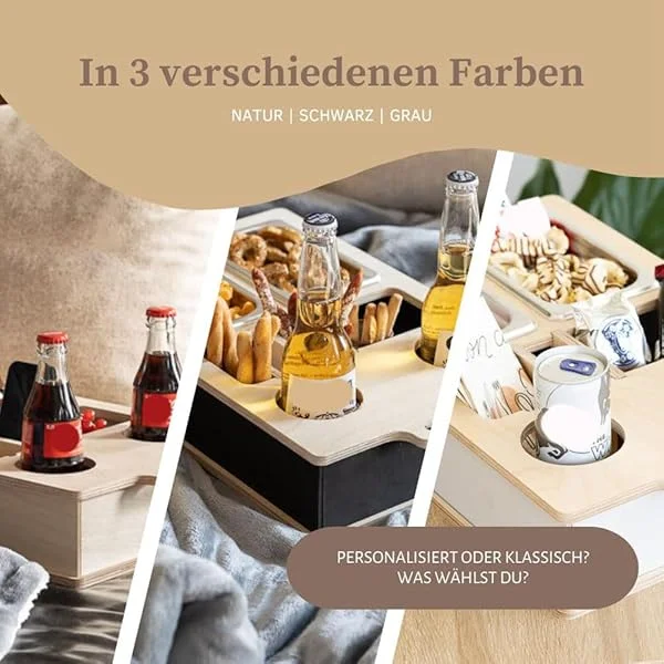 The Couch Bar is the solution for placing your snacks and drinks in style on the sofa.