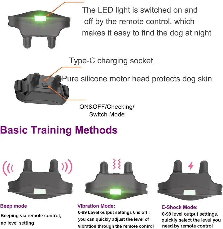 No stimulation, safe dog training collar-This remote dog training collar provides a safer vibration mode, compared with other training collars, it can better protect your dog's safety and attract your dog's attention, effectively correcting your dog's bad behaviour.
