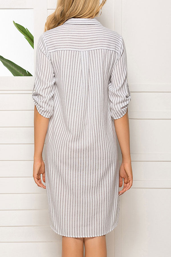 Casual Striped Pockets Shirt Dress.