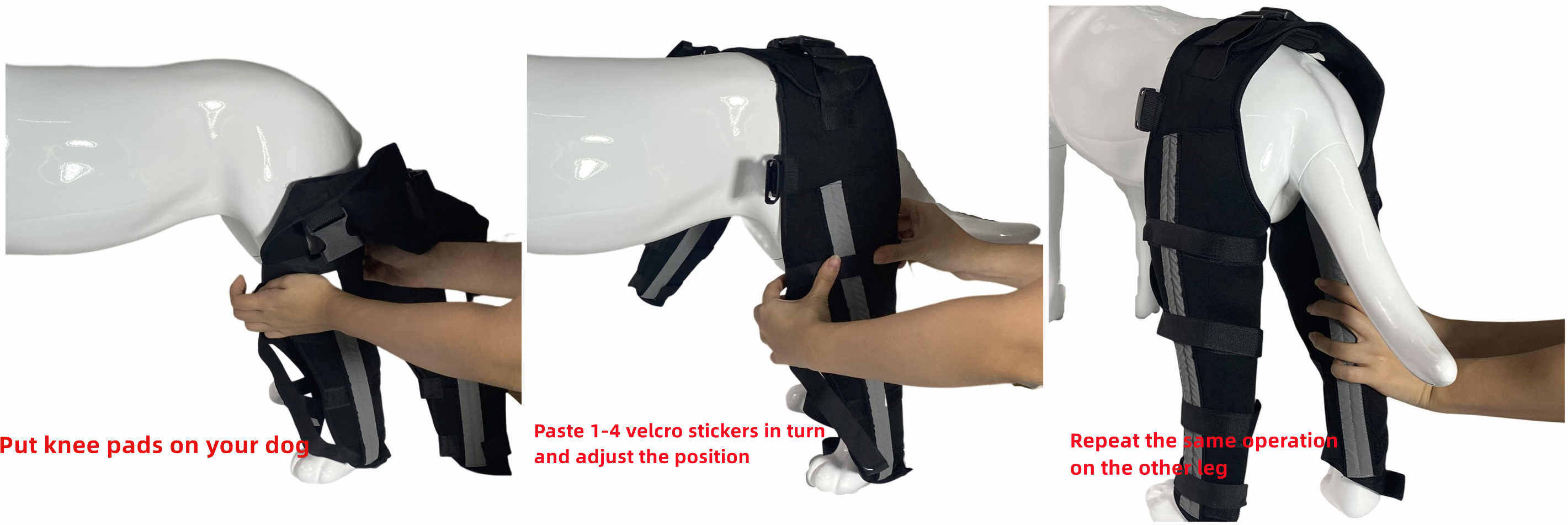 - Put dog leg brace on your dog’s legs carefully