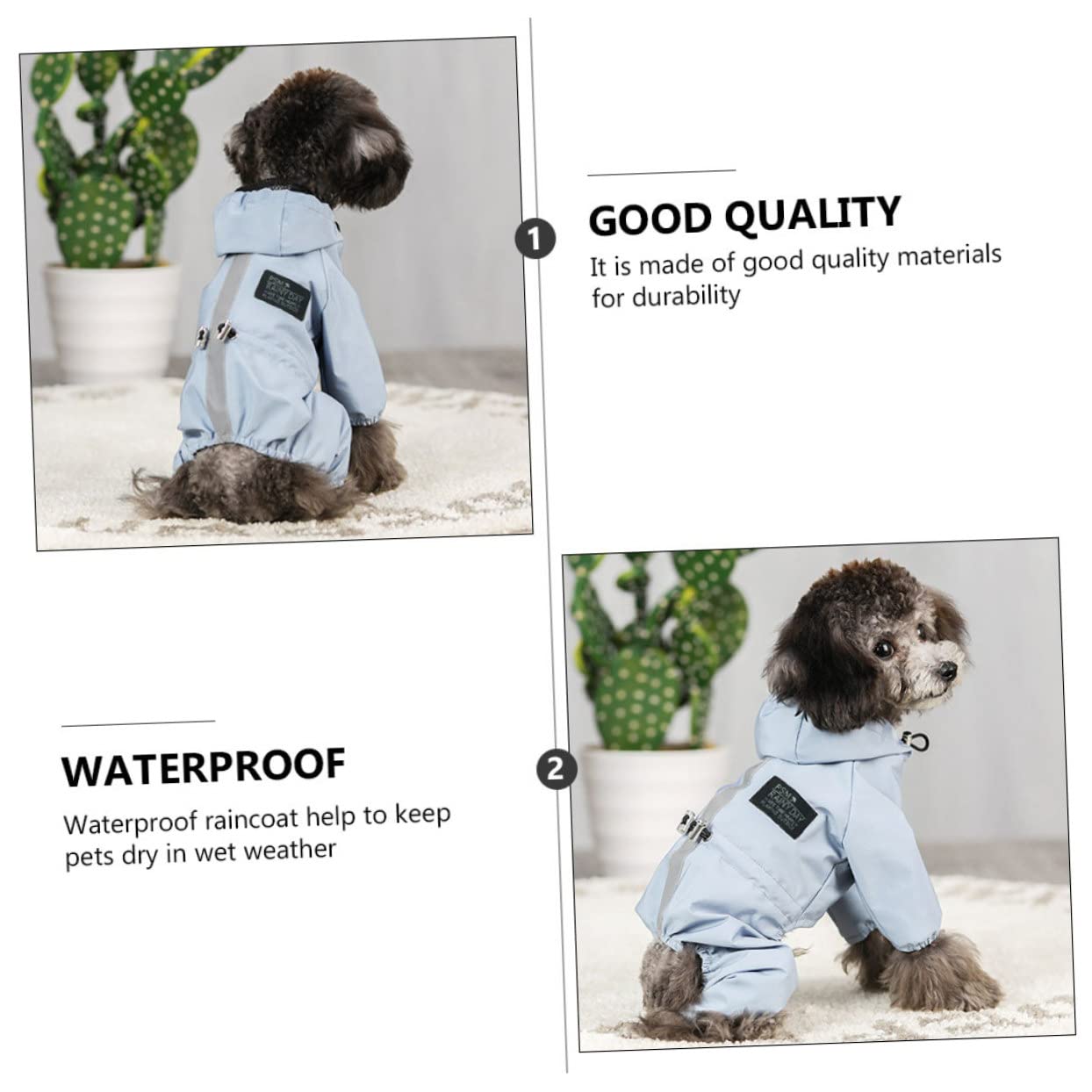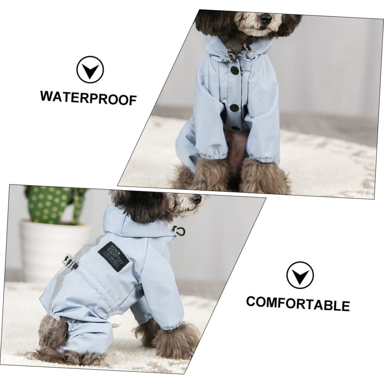 - Waterproof raincoat help to keep pets dry in wet weather Adjustable Dog Poncho.