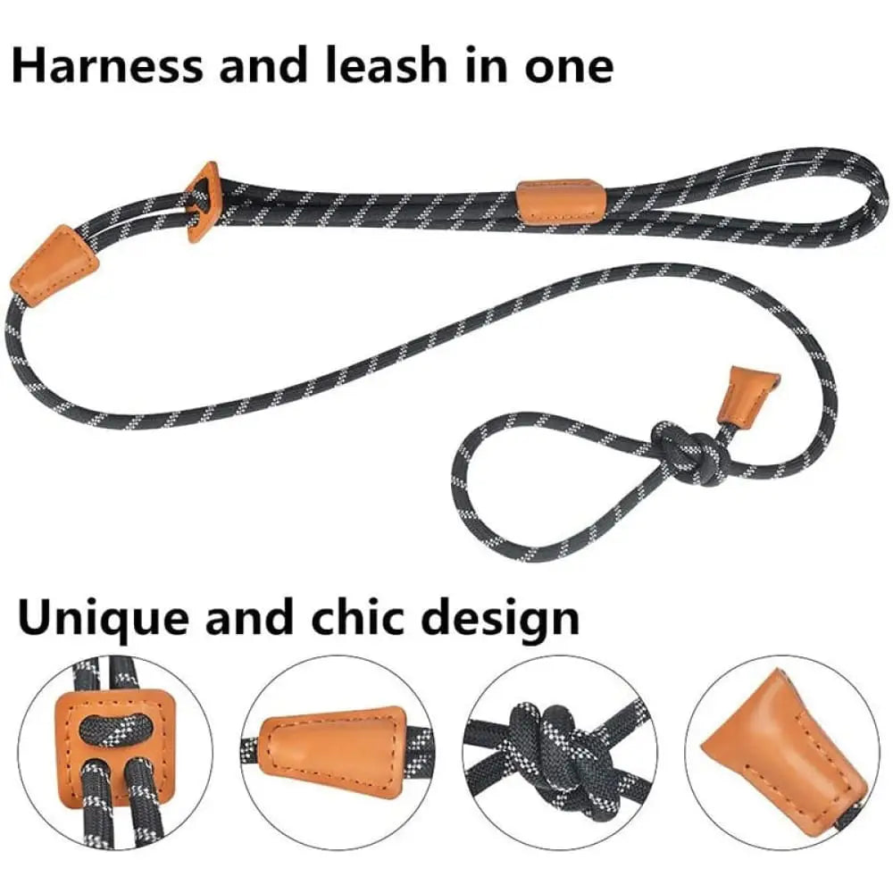 • Unique Design and Versatile Usage: A leash and harness all in one, saving the trouble of wearing a collar, harness, and leash at the same time, perfect for owners who hate fumbling with leash hooks and collar loops, very convenient and easy for outdoor walking.