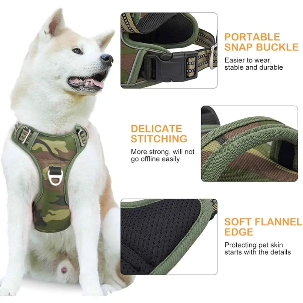 • 1 x Durable Heavy Duty Camouflage Reflective No Pull Pet Harness Vest For Large, Medium Dogs