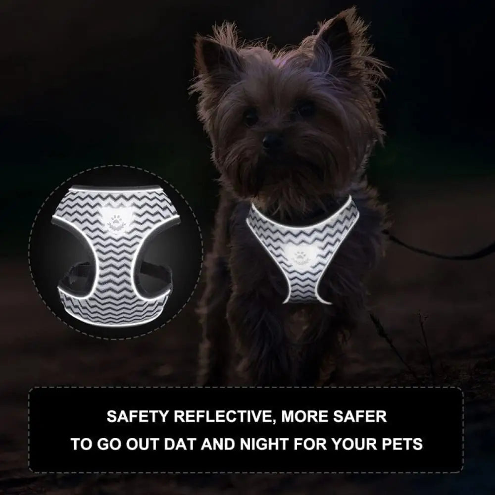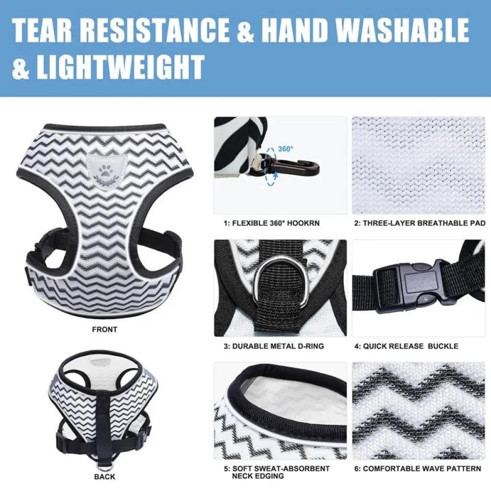 • 1 x Durable No Pull Soft Wavy Reflective Lightweight Pet Harnesses Leash Set For Small, Medium Dogs