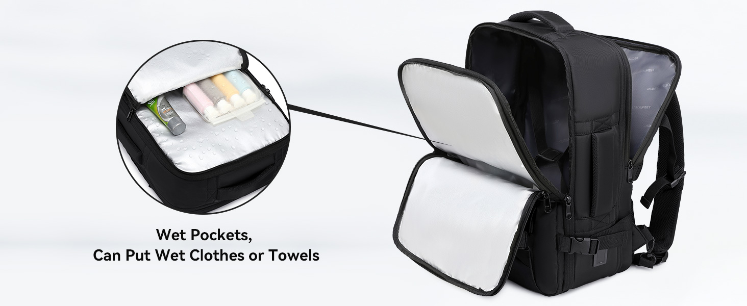 This extra large travel backpack with expandable feature offers you more packing capacity up to 40L.Unzipping to get larger storage space then can easily hold packing cubes, make-up bag, outfits, camera bag and gear for 3~7 days of travel. The carry on backpack fits overhead and under seat while on state of standard carry on size, is ideal for men, women, weekend traveler, or occasional vacationer.
