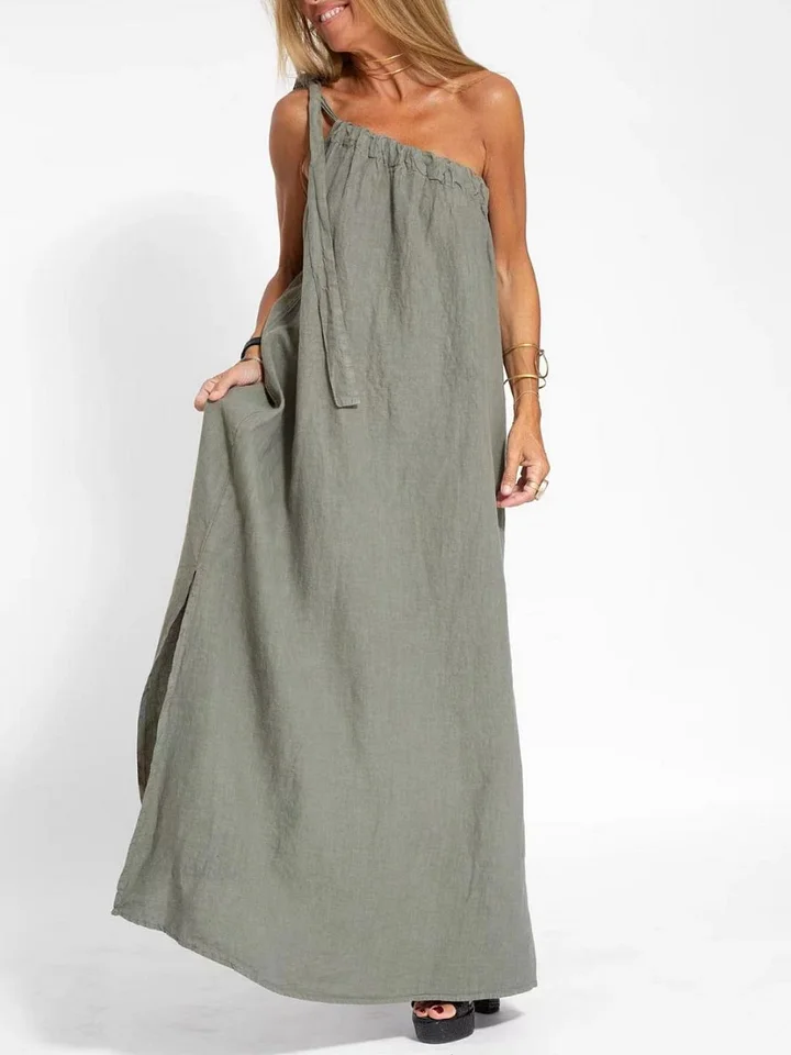 Women's Summer One Shoulder Spaghetti Strap Lounge Dress Boho Maxi Long Sundress