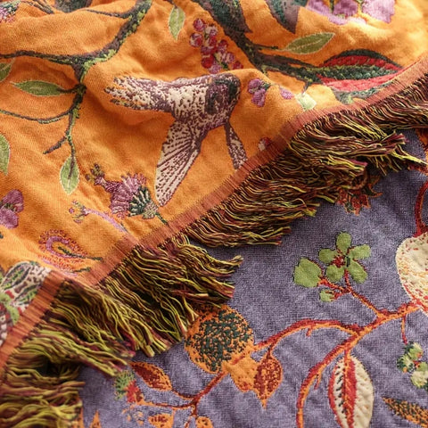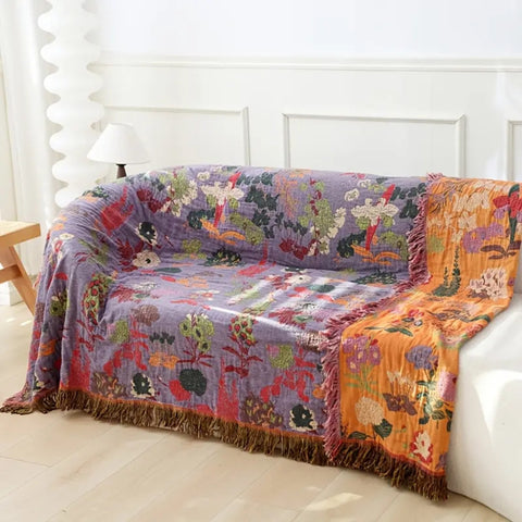 Floral Cotton Tassel Blanket - Lightweight and Reversible Design