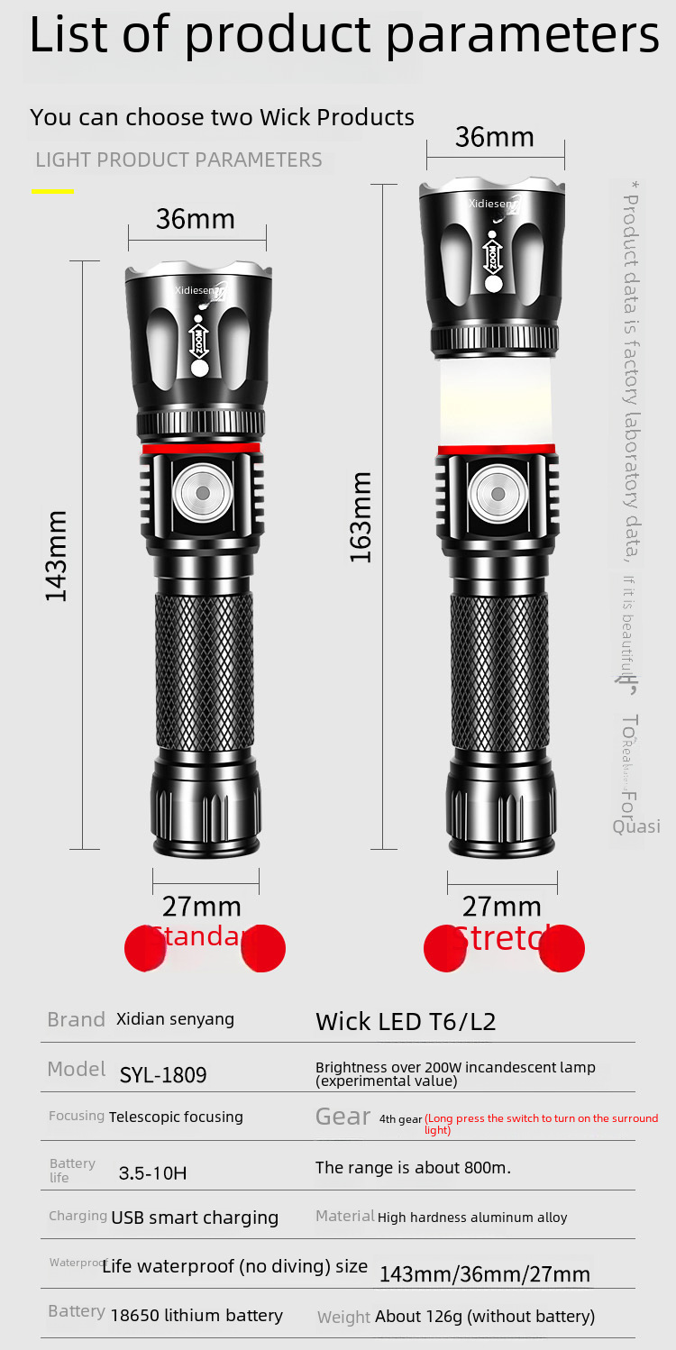 Zoom Function: Equipped with a zoom function, this flashlight allows you to adjust the beam's intensity according to your surroundings or needs.