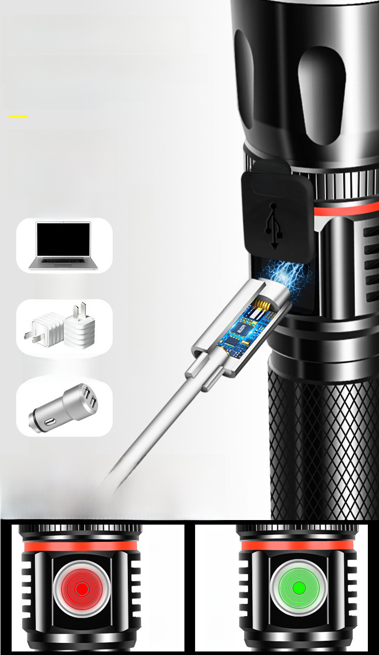 Rechargeable Design: With its rechargeable design, this flashlight eliminates the need for constant battery replacements, offering convenience and longevity.