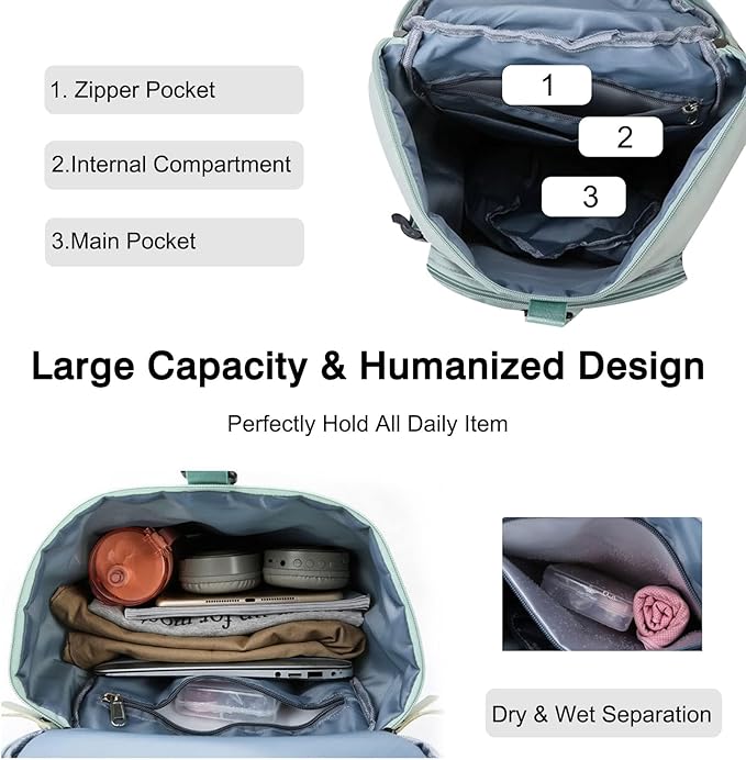 ✈Wet & Dry Separation Pocket - Design one separate compartment for wet items,such as swimsuits, towel or other wet items you want to keep separate.