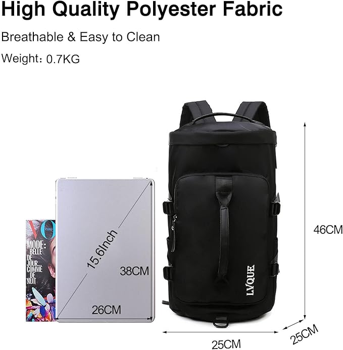 ✈The main internal compartment has enough space to keep your 15.6 inch laptop, magazines, documents, clothes, umbrella and other travel or business accessories, passport, pens, power bank, books or other fitness supplies.