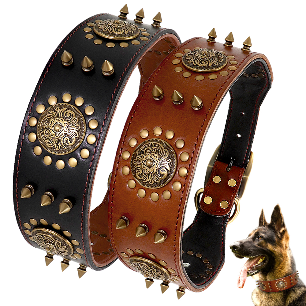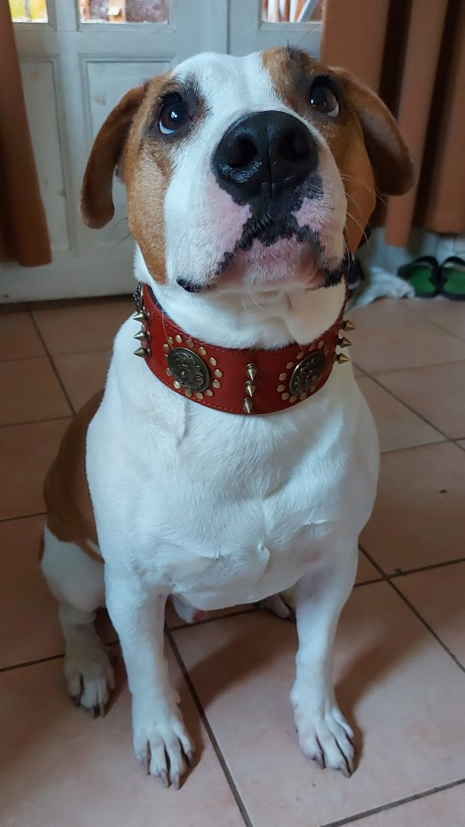 Make your little buddy look the bad ass he is with this super cool Leather Large Dog Collar Pitbull, so your pet can now be as edgy as you are. Unique design - Unlike most collars, this Leather Large Dog Collar Pitbull features a very unique studded design.