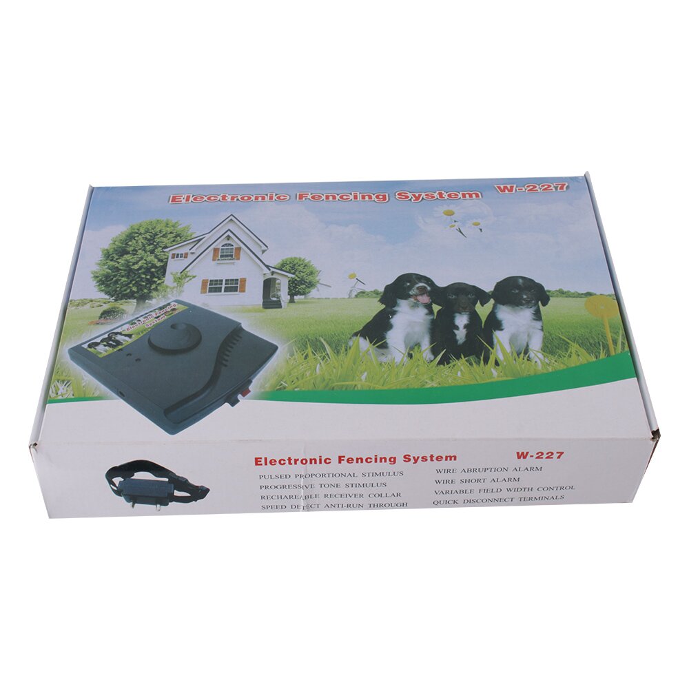 This hidden W-227 fencing system is among the most reliable, cost-efficient pet containment systems available today. A buried wire transmits a harmless radio signal. When you dog approaches the boundary, the signal causes the dog’s collar receiver to deliver a warning beep first. If your dog continues closer to the boundary, the system will issue a mild electric shock. If your dog continues further, the system will issue stronger electric shocks until your dog returns to within the boundary your have set up. Your dog will naturally seek to avoid correction, and is content staying within established boundaries.
