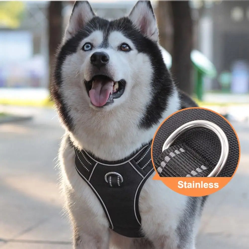 • No Pull, No Choke - Our non-pulling dog harness is specially designed with 2 metal leash rings for safer dog walks(1 front clip,1 back clip). Use the chest attachment clip to stop your dog from pulling on walks, perfect for dog training or dogs who tend to pull.