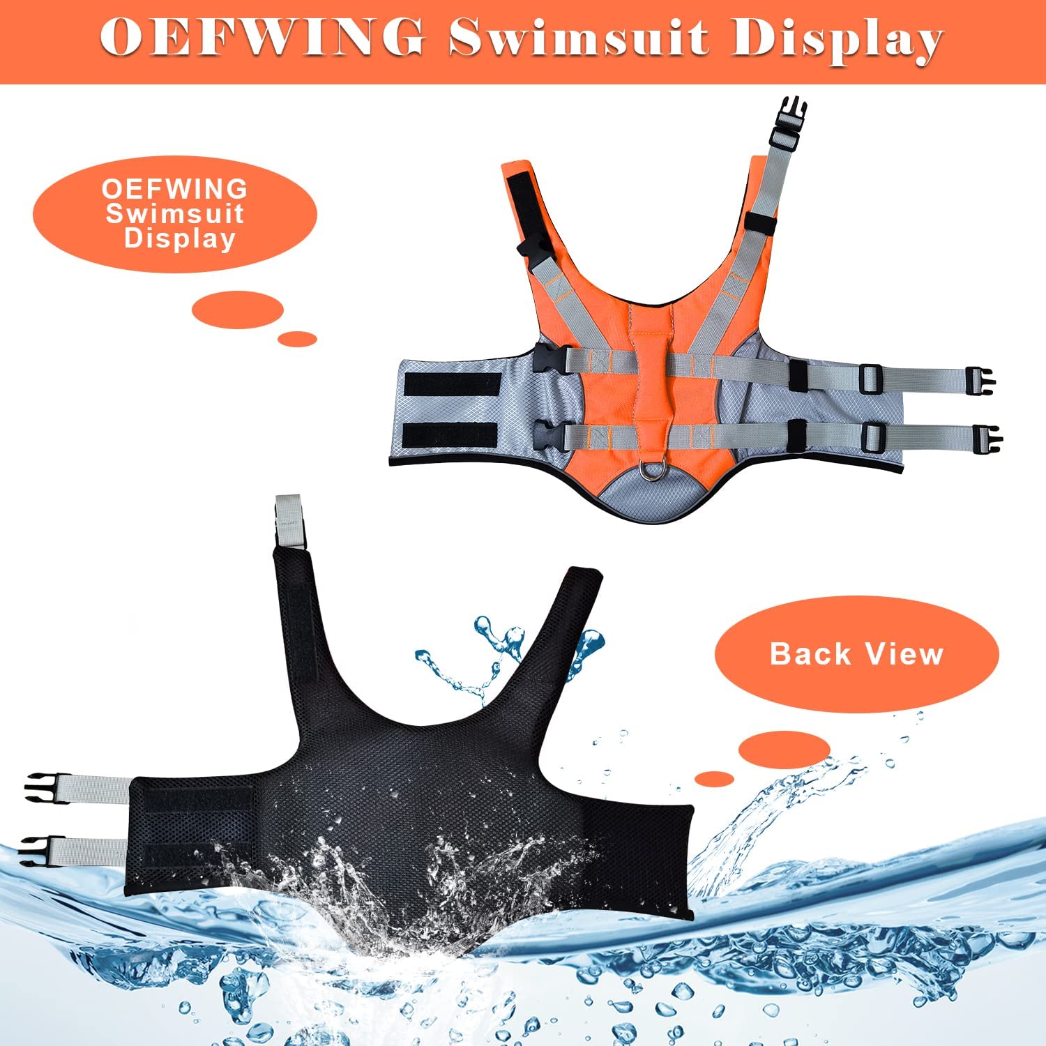 Feature2:Adjustable dog life jacket, designed with top grab strip for easy rescue by hand or boat hook in the water.