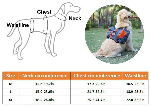 When using it, keep the bag's weight 25% or less of the dog's weight and distribute the weight evenly on both sides which helps the pet to maintain a balance when walking and running.