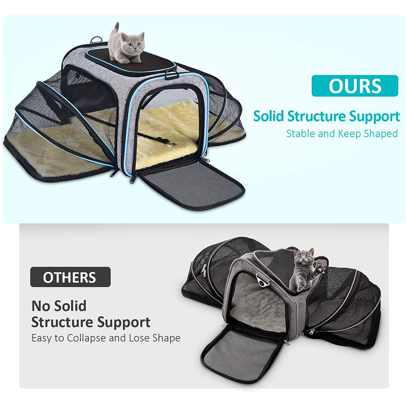 Pet carrier designed with microfiber frame prevents the top from sagging, keeping solid and stable even after total expanded.