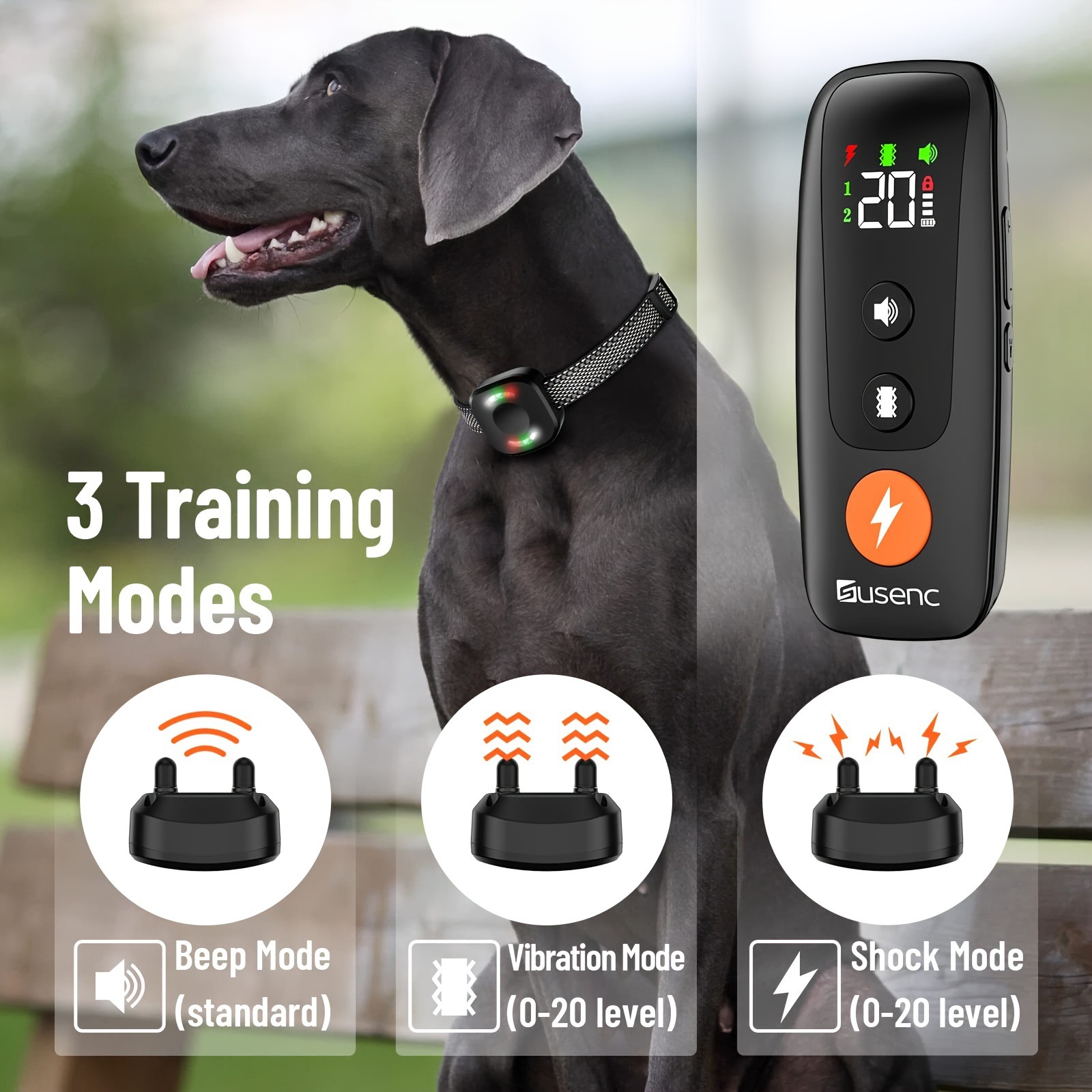 NOTE: Use of electric shock collars is a controversial training method. It is recommended to consult with a professional dog trainer and to determine the dog's sensitivity level to use the lowest effective stimulation level.