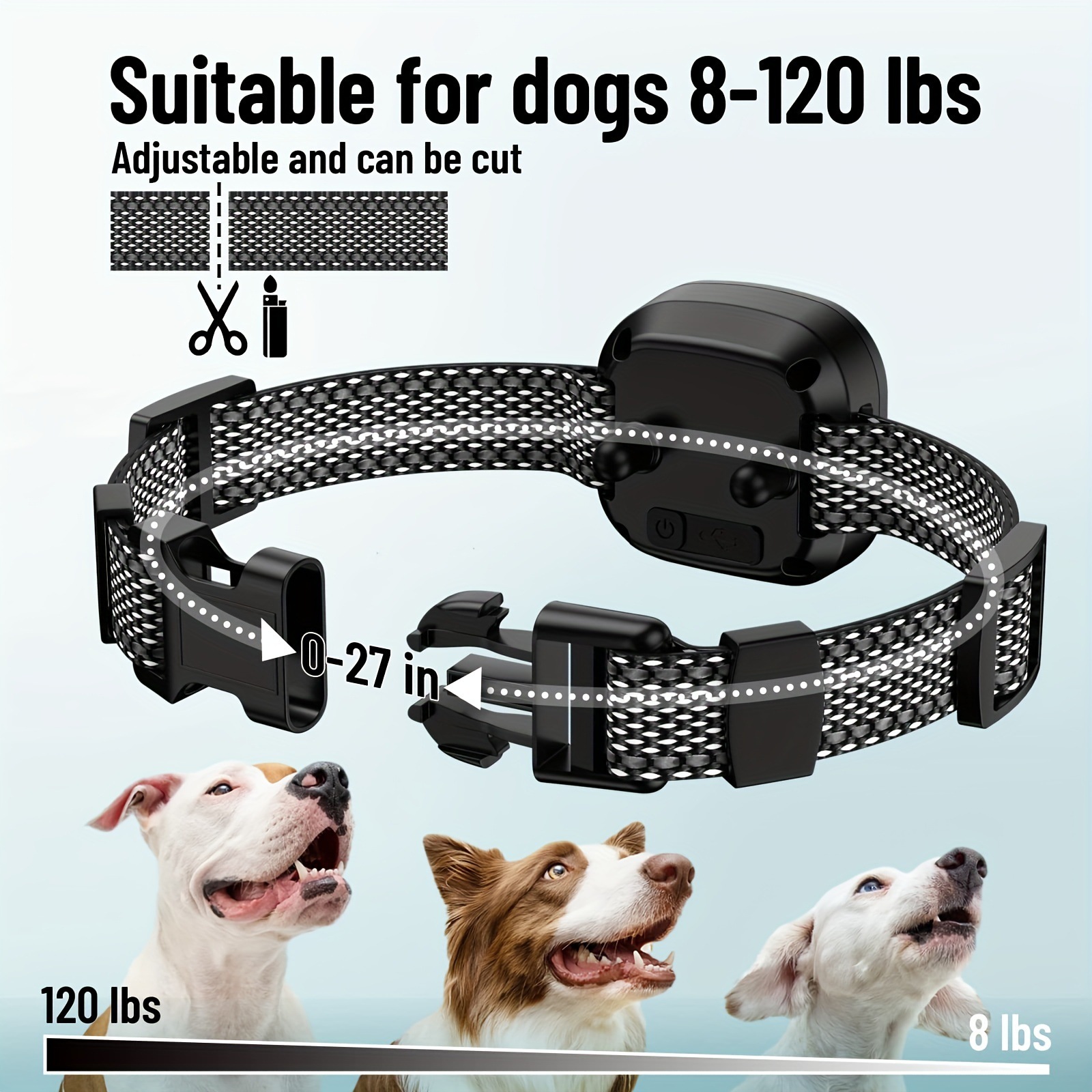 The collar is rechargeable and designed to be waterproof for various outdoor conditions.