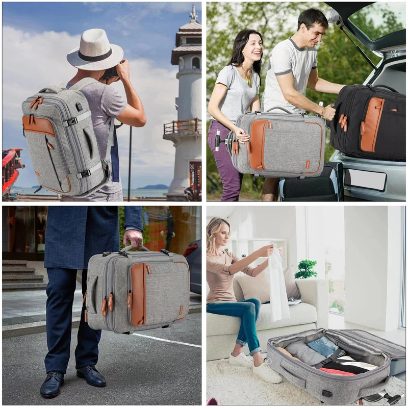 The luggage backpack is constructed to be most comfortable over hours of carrying, with multi-panel ventilated padding and adjustable and breathable straps which relieve the stress of the weight on your shoulders. Equipped with an adjustable chest strap, provides a better wearing experience. A luggage strap to attach the backpack to your suitcase. An anti-theft back pocket is suitable for valuables. Features a USB port, which means you can charge your phone on the go.