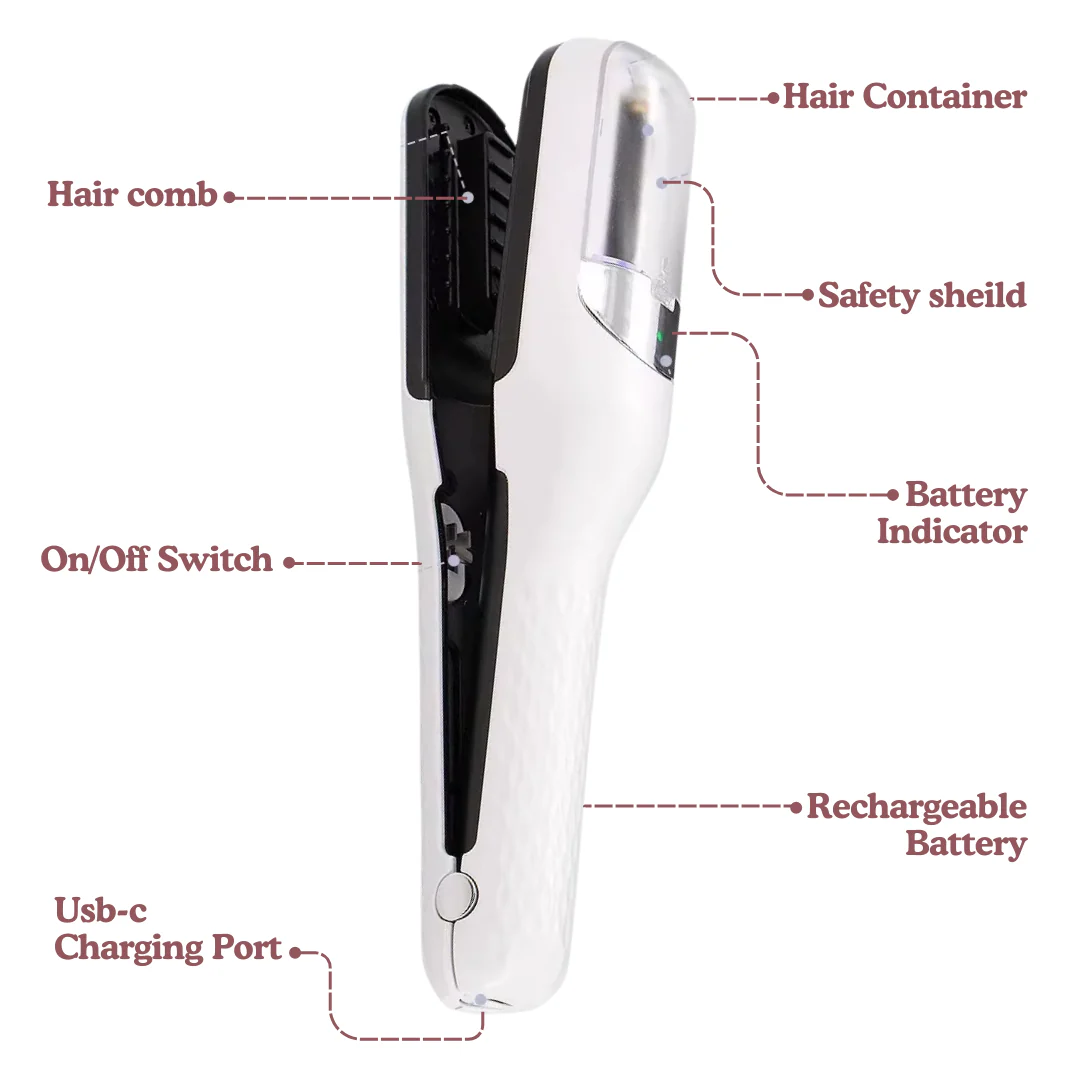 Enjoy smooth, healthy strands with our precision trimming system that gently removes split ends for a sleek, salon-fresh look.