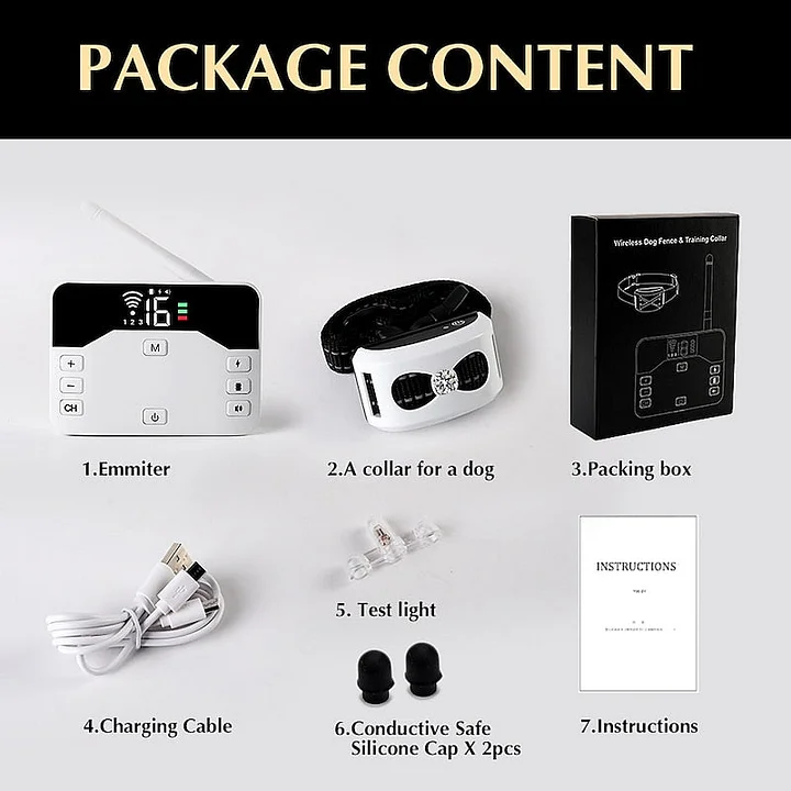 The 2-in-1 Wireless Dog Fence & Outdoor Training Collar is an innovative device designed to enhance your dog's training and ensure their safety. Combining an anti-bark collar with an electronic fence, this device offers a versatile solution for managing your dog's behavior and preventing them from straying.