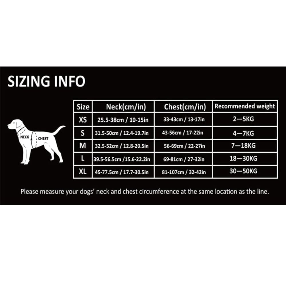 Note: the size in the chart is the size of the dog. Due to different measurement methods, size may exist in 2 -3 cm error.