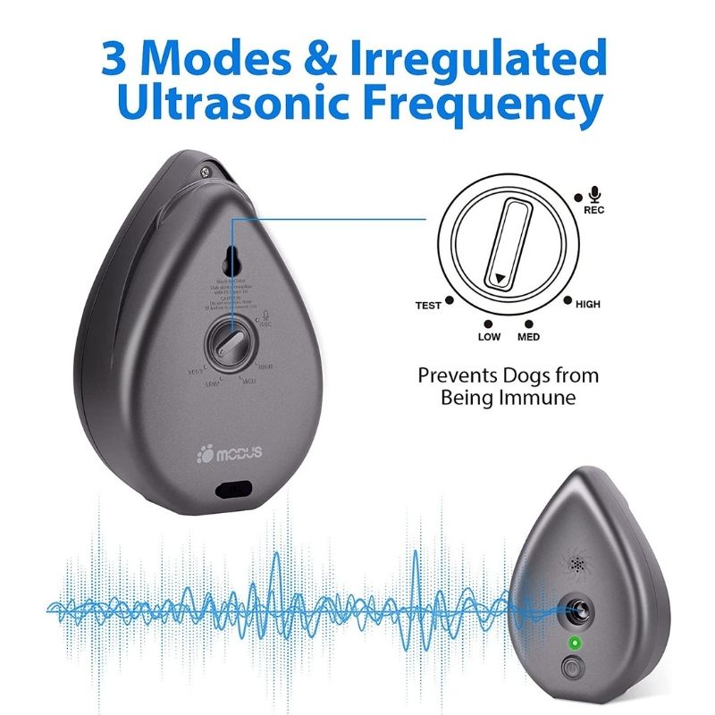 3 Adjustable Modes and Safe for Dogs: The anti barking device adopts 3 modes: Low, Med and High; Med and High level are equipped with a new function of frequency conversion, which could release irregular ultrasound; frequency conversion prevents dogs from being immune to ultrasound; the ultrasonic bark control device is safe for dogs and only the dogs can hear ultrasound.