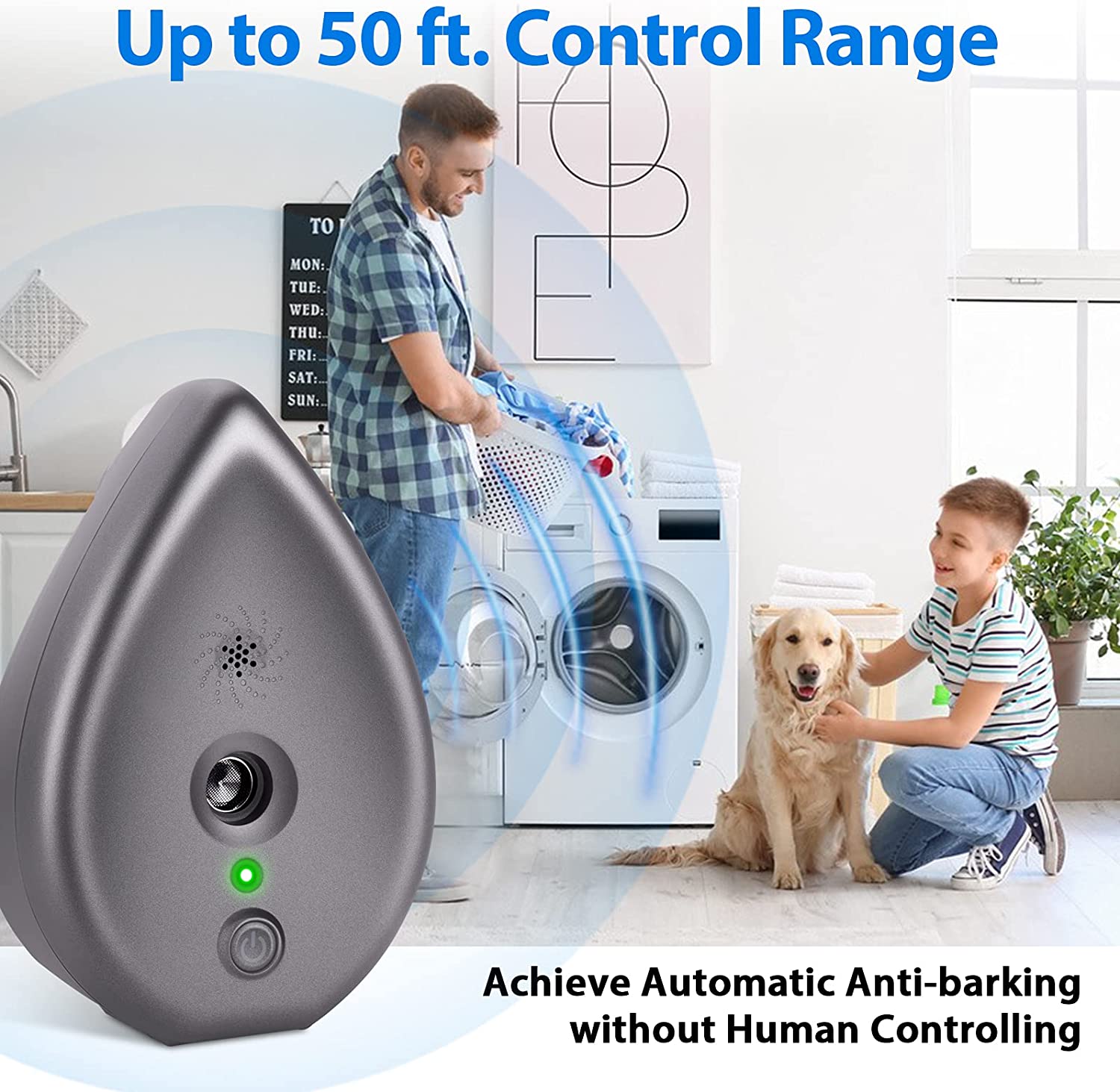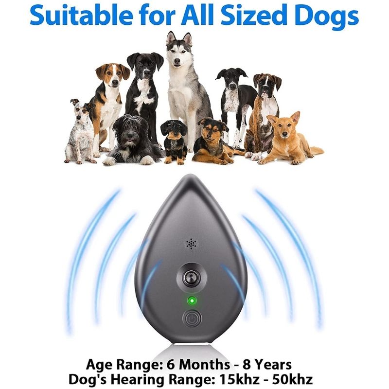 Long-distance Control Device: The anti barking control device has long-distance detection, The dog barking control device could automatically detect dog’s barking within 50 feet, then the bark control device will send a changeable ultrasonic wave to prevent dog barking.