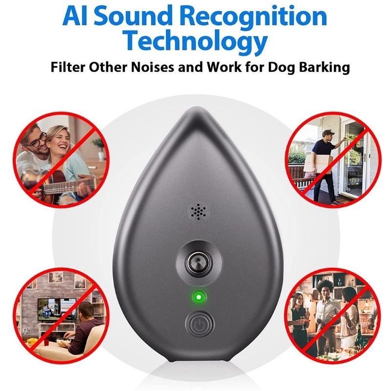 Recording Technology and AI Recognition: The anti barking device is updated with 2 new functions; Recording Technology could record and store your dog’s baking, then AI Recognition could filter other irrelevant noises and identify the sample of barking, to achieve more accurate dog barking detecting.