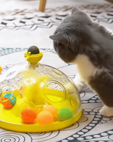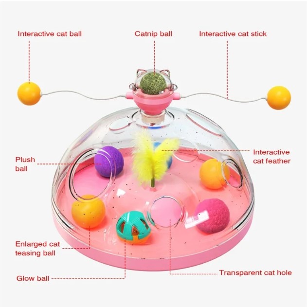 ✅ Rotating Catnip Ball: A large catnip ball, complete with a revolving mechanism, sits atop this toy. In addition to reducing stress and improving digestion, catnip also makes cats very joyful and elated.