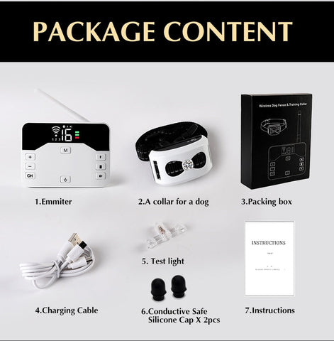 Make training easier with our Wireless Dog Fence Collar. Customize the training experience for your dog with our advanced system. Set up boundaries tailored to your yard and use sound, vibration, and static reminders to teach your dog where they can go. The waterproof collar is adjustable and long-lasting, perfect for multiple dogs. Train hassle-free and create a safe space for your furry friends with our Wireless Dog Fence System.