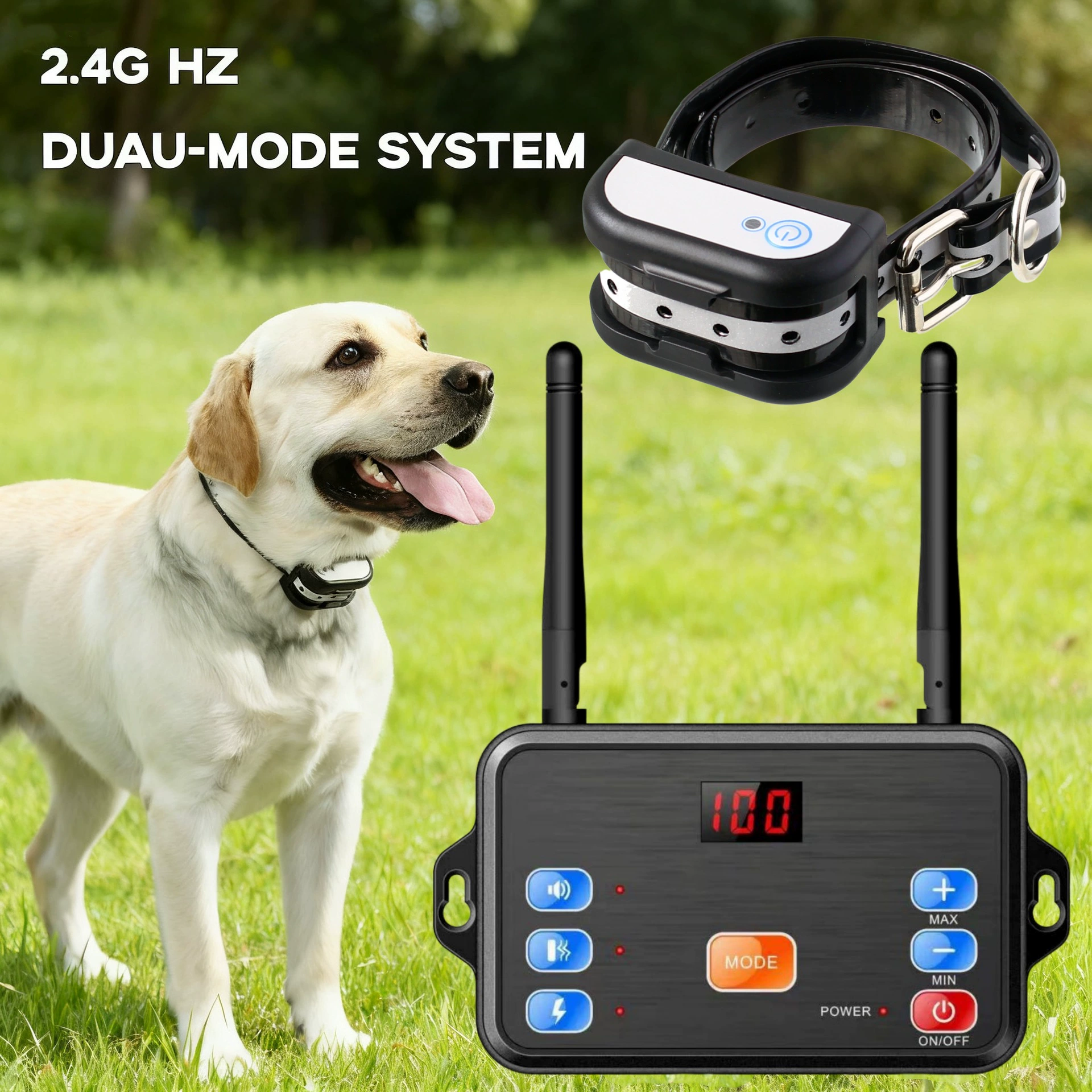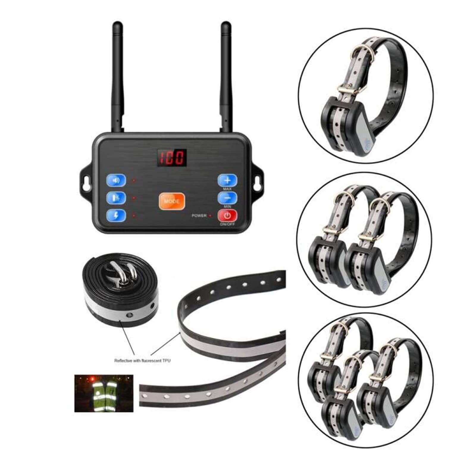 In training mode, you can manually control sound, vibration, and static correction with three adjustable intensity levels. With 1–100 adjustable fence levels, waterproof design, and quick setup, this system combines safety, flexibility, and convenience.