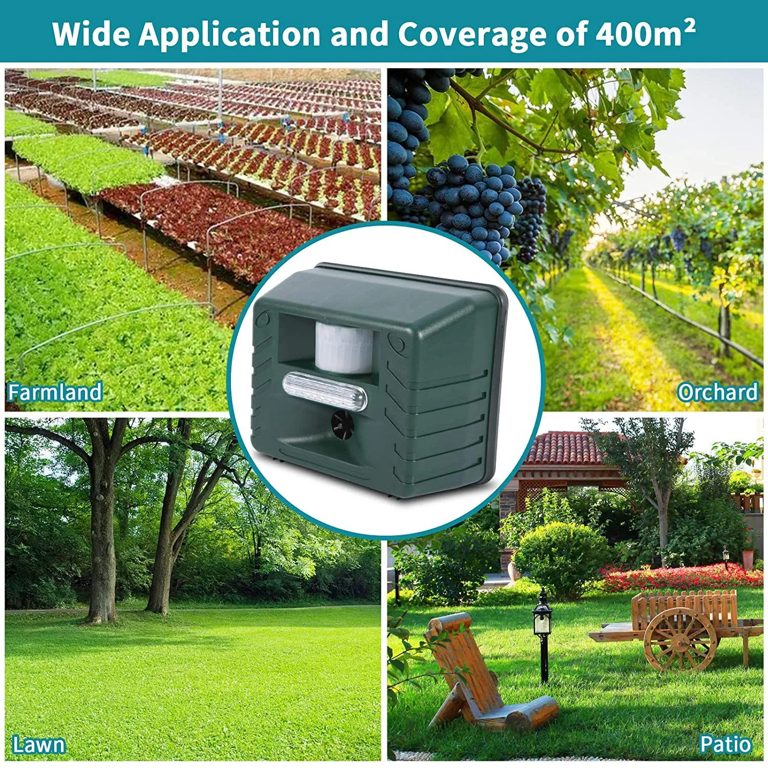 The Electronic Bird Repeller operates continuously and has the option of using the built-in motion sensor that activates the unit when animals move into its coverage area. This area size is 24 x 15 metres = 360M2. You can change the setting to be on continuously to aid in controlling smaller animals like rodents and birds.